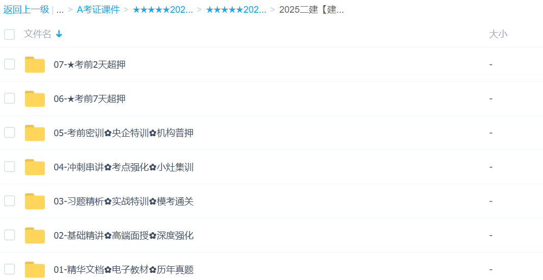 01文档班、02精讲班、03习题班、04冲刺班、05押题班、06考前7天超押、07考前2天密押